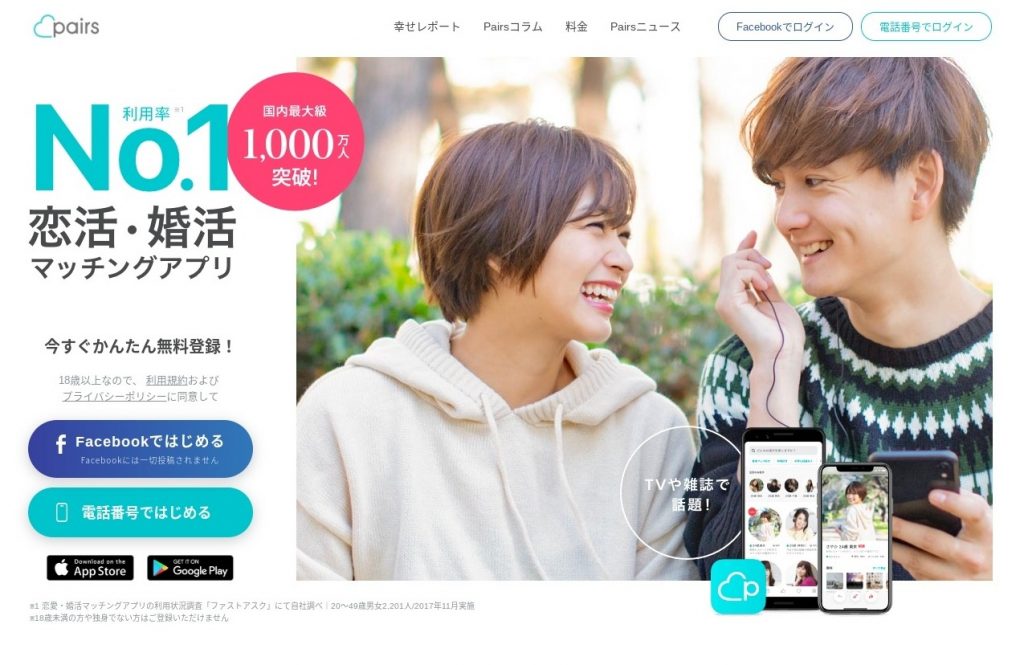 検索機能が使いやすい「ペアーズ」
